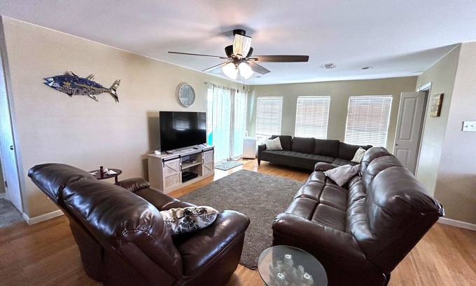 Newly remodeled in 2018 to a 4 bedroom, 3 bathroom home. Home now has a separate guest room with 2 queen size bunk beds and a full bathroom. There is a covered sitting area with a view of the Gulf of Mexico. Flat screen TV with cable (ESPN included) and Wifi. Please note the owner does keep their boat on the property and it is not for renter use. Please do not block access to the owner's boat.