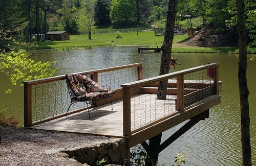 Looking for a Great Get Away, Our cabin is nestled in the woods of Floyd County VA, its 30 minutes to Roanoke and Christiansburg & 20 minutes to the town of Floyd, It has total of 430 square feet, Queen size bed in the loft and a Queen size Futon on main level- Full bath with stand up shower-Full kitchen-Air conditioning-Gas logs-40 inch HDTV with Firestick4k- Bluetooth speaker, Cabin has 2 docks one with Zipline, and other with paddle boat, also has stand up paddle board it sits on a private 2 acre lake, Great fishing, Catch and Release only! Will accommodate 2 Adults & 2 kids or 4 adults only, No Smoking!!Sorry NO Pets!! Also have house rules and they are listed in cabin!