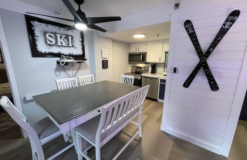 This stylish fully renovated unit in Silver Creek is perfect for families or group trips. We offer cozy sleeping for 8! Master bedroom has a king and a twin daybed and private bathroom, 2nd bedroom has a king & double murphy bed, living room offers a queen sleeper sofa. Come and enjoy the ease and comfort of throwing on your gear to head down to ski right off the mountain! Silver Creek offers a fun tubing park, indoor pool & hot tub! Shuttle buses run every 30 minutes to the Snowshoe ski runs.