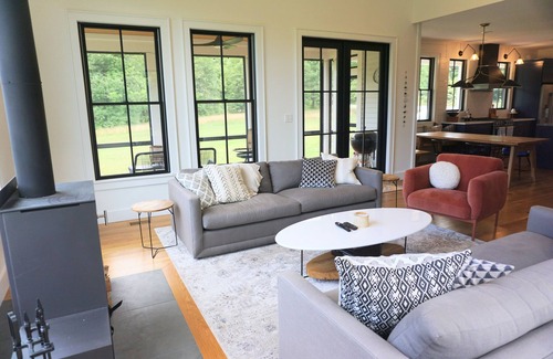 Modern farmhouse newly built and closest rental to Gore Mountain. 4 bedrooms with 3.5 baths. Enjoy skiing, hiking, biking, rafting and fish North Creek in your backyard. Wifi. Wood burning stove. Great modern kitchen for preparing meals. Close to downtown North Creek for shopping and restaurants.