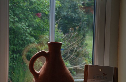 This beautiful terrace cottage is owned by a renowned travel writer & contains decorations from all over the world - as well as a myriad of books! There are 2 bedrooms, a cosy lounge with open fire and a large airy kitchen & dining area. French windows lead from the kitchen to the garden which is small, a little wild, but much loved -- there is plenty of room to have lunch outside but you might struggle to organize a five-a-side football tournament. There are beautiful views from the end of the garden southwards towards the Dorset Downs. As well as the kitchen and living room, the downstairs has a small book-lined library, a bedroom with two single beds and a guest loo. Upstairs is a large landing with a divan or day bed that could be used to accommodate a fifth person, or perhaps just for afternoon naps, a double bedroom and a large family bathroom with bath, sink, bidet and shower. The house stands on a quiet road on the edge of an even quieter village. There are plenty of walks from the front door. There is WiFi throughout the house, TV and DVD, a stereo system for CD's and all necessary equipment and facilities, including a gas hob, in a well-stocked kitchen. Weekly guests will find a welcome pack of essentials on arrival to get them started, including a bottle of wine, and the kitchen contains all the usual stuff like tea, coffee, salt, pepper, olive oil, etc etc that guests are welcome to use.