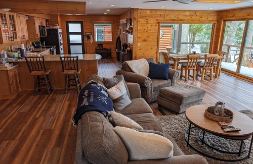 This four (4) bedroom, two (2) bathroom property will comfortably accommodate ten (10) people with ease. Feel free to relax, renew and rejuvenate with friends and family at this exclusive low key location. This lake house has all the amenities with an up north feel with tons of great wood in the house. Lots of great indoor and outdoor spaces. We have a waterfront boathouse with a nice high top table. We have a great rec room for those times when you need to get out of the bugs or the cold. This property is great for all the seasons. Lots of activities in this area all year long!