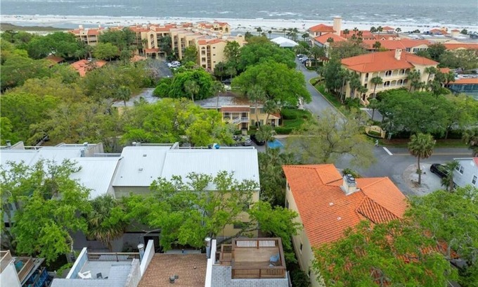 This three-level townhome with a fourth-floor sundeck is just a block from the King and Prince Hotel and steps from the beach. It offers an updated kitchen and baths, new roofs and decking, a guest suite and bonus room on the first floor, open living areas on the main level, two en suite bedrooms upstairs, and a top-floor bedroom with a sun deck and crow’s nest lookout.