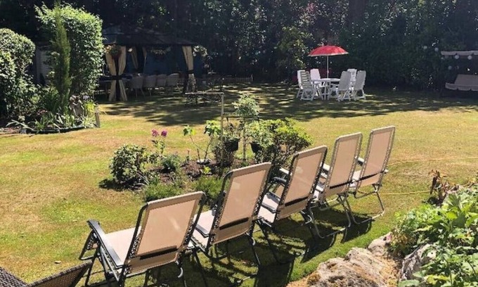 Comfortable 'retro' Maisonette option also available with 4th bedroom and extra bathroom and shower with separate WC as a bolt on - sleeps up to 12 with this configuration. With fantastic luxurious Californian SPA hot tub seats 8-10 with massage jets, recliners, Blue tooth & rainbow lighting. Sunny & quiet, fully f'shed & equipped - own front door, ORP, 0.25 miles from Bmth Uni,Talbot Campus,5 mins to excellent local shops,Blue Flag award clean beaches, golf etc.. restful views half acre sth-facing garden w/marquis BBQ, best location in Bmth. Fully serviced, Sky TV movie & sports channels,fast wi fi, LV washer drier