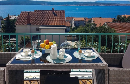 These tastefully and modernly furnished apartments are located in a detached house on a fully fenced and beautifully landscaped garden with Mediterranean plants. Apartment CKC646 has a partial sea view while apartment CKC645 has a beautiful panoramic view. CKC646 is ideal for 2 families as it consists of 2 separate accommodations each accessible from the terrace. Dramalj is a small tourist place, close to the bigger and more famous place Crikvenica, whereas Dramalj can compete apsolutely with its qualities and gastronomic offer. A promenade on the coast connects both places.