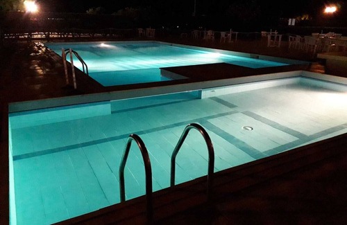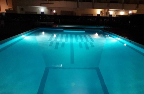 Yes, this Casa Santa apartment has a swimming pool. Check the Facility Overview section for details about the pool and other available facilities.
