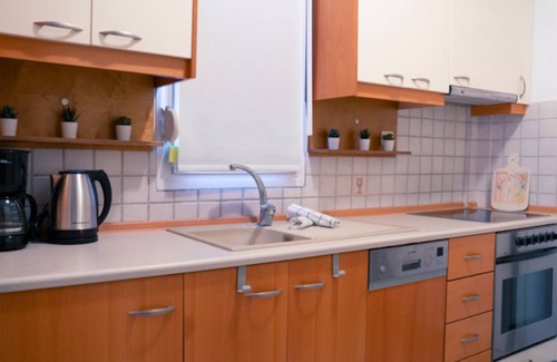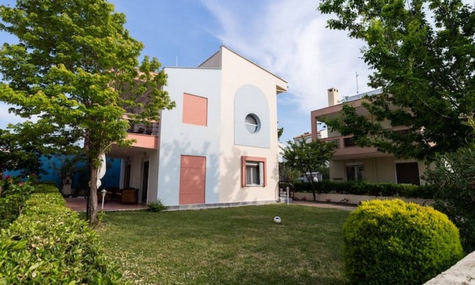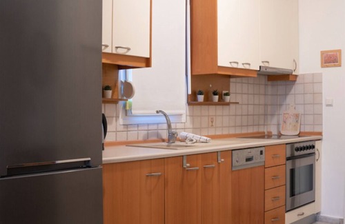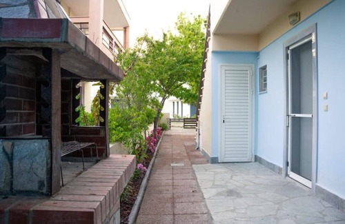 Adorable country house in Polychronos, Chalkidiki with its own garden fully furnished and equipped with electrical appliances ( big fridge, washing machine, coffee maker, kettle etc.), linens, air - condition, wifi, kitchenware and that is necessary. Sleeps up to 6 people with two double beds and a sofa bed in the living room that opens and becomes a double. It is literally 5 meters from the sea and has very easy access from guests.