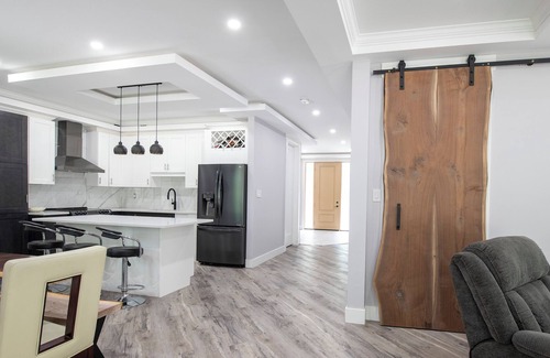 Georgian Dream is a new build and is a family dream home. The ceilings are absolutely incredible, fully lit by LED multi-lighting systems, large windows, massive tree-line and ridge-line, the furniture , beds and bedding add a soft touch. A lot of natural elements are brought into the home and it is styled by renowned Milana O, who designs in '3s'. The main hall is a jaw-dropping 25ft long with 3 large and spacious bedrooms off the main hall, including a large 4-piece bath area.