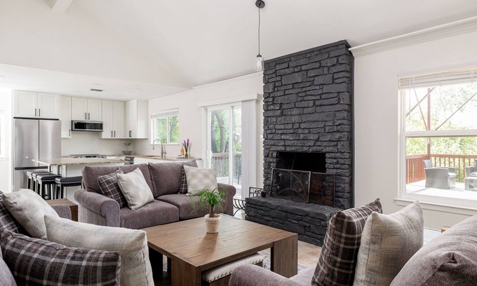 Ensconced in shade trees and even a palm tree, you'll find Treetop Vista by Portoro. A charming split-level home with an inviting open floorplan along with 3 comfortable bedrooms. Out back is where Treetop Vista really shines, with two seating areas, a grill, and even an observation deck to enjoy the amazing views. It's a perfect place to reconnect with your friends and family, nature, or the stars above.