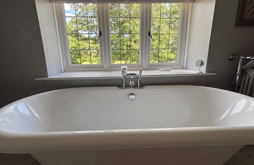 New modern Bathroom with electric shower and XL roll top bath.