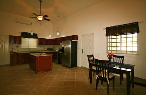 This beautiful three bedroom house is available now for rent. It boasts granite countertops and teak cabinetry in the huge satin kitchen. The living room and kitchen also have vaulted ceilings. Home is very roomy with three bedroom, large master ensuite and 2300 sq ft wrap around covered porch. The house is very secure with full fencing and electric front gate. House also has camera security system.
