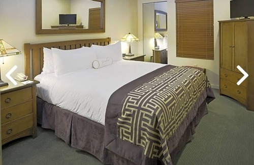 Just south of the strip in a family, friendly location, less crowded and less noisy than many of the big resorts on the strip yet with tons of amenities and fun things to do. Each 1 bedroom one bath suite has a living room and a kitchen and a dining room. Plenty of space for a family! There are several pools and 4 waterslides fun for kids and adults! Restaurants are available on premises. Sip a cok tail by the pool or relax in the large whirlpool outside. There is a Lovely fitness center with gym. Times: may vary but generally the pools open at 10 AM and are open until 7 PM unless otherwise specified. There are so many great shows nearby like Cirque du Soleil, Blue Man Group, Penn and Teller Magicians, and even America’s got talent shows all within a few miles drive to the strip. Also, public transportation is available and shuttles take guests to the strip from the resort- ask the front reception concierge for details. This is our timeshare but we can’t go this year.