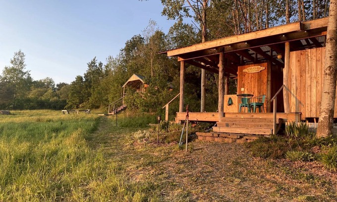 You will have private access to a rustic outdoor kitchen in the bath house, a 10-second walk from the tent cabin. The kitchen is stocked with a small fridge, 2-burner stove, dishes and flatware, cutting board and knives, olive oil and salt. We also supply a charcoal grill, charcoal, and a lighter. We provide fresh-ground organic coffee, sugar, and milk, a French press, and a drip coffee pot. We also provide a fire ring, kindling, and firewood you can use to have a campfire during your stay.