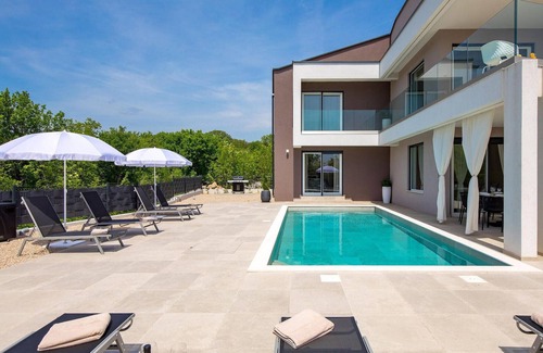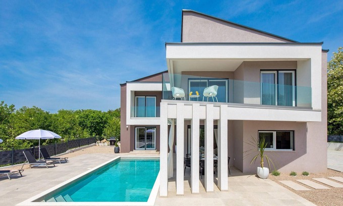 If you are looking for a villa for a peaceful vacation, Villa La Vie Krk is an excellent choice. The villa can accommodate up to 8 people in 4 bedrooms. There are three bright and cozy bedrooms on the second floor of the villa. All rooms are air-conditioned, have a double bed and TV and each has an exit to the terrace where you can relax with a good book or enjoy the beautiful view of the surroundings. Two rooms have their own bathroom, while the third uses an additional bathroom, which is also located on the same floor. On the first floor of the villa you will find another bedroom with en-suite bathroom, double bed, air conditioning and TV. The room has direct access to the garden. On the first floor there is also a living room with TV, which is connected to the dining room and a fully equipped spacious kitchen in an open space concept. The entire area is air-conditioned. From the living room you can access the villa's garden with a swimming pool to cool off on hot summer days and sun loungers where you can relax and enjoy the sun with a refreshing drink. Next to the house there is a covered terrace with a dining table where you can enjoy meals with family and friends that you have prepared on the barbecue, which is also at your disposal. The property is fully fenced and has private parking for 5 cars. Book your accommodation in Villa La Vie Krk and spend a perfect vacation with family and friends. Villa La Vie Krk is located in the small village of Garica on the island of Krk in the Kvarner Bay, which is considered one of the most attractive and beautiful destinations on the Adriatic. A good connection to the mainland (bridge), an excellent tourist offer, various beaches with small bays, beautiful nature and various possibilities for fun and relaxation make Krk one of the most interesting tourist destinations on the Adriatic. Garica is a typical island village - located in the central part of the island, peaceful, quiet and surrounded by beautiful nature. Among the island's special features are 2,500 hours of sunshine per year, hundreds of kilometers of hiking and cycling trails and over 1,400 plant species. Visit Vrbnik, a small town with almost 900 years of history. Vrbnik is also known for its famous Vrbnicka zlahtina. Don't miss the island of Kosljun, a unique cultural and historical place not far from Punat, as well as the town of Krk and the famous Frankopan fortress, located in the historic center of the town. We recommend a visit to the almost kilometer-long Vela beach in Baska in the south of the island. The island offers many different beaches and no matter which one you choose, you won't go wrong! The temperature of the heated swimming pool depends on external factors, including weather conditions, and therefore the water temperature cannot be guaranteed.