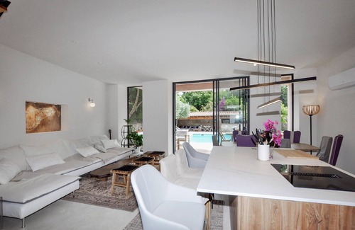 Be inspired by this modern and stylishly furnished holiday home in Ille-sur-Tet. Your holiday home is the ideal place for a relaxing stay with family or friends. Relax by the private pool, which is surrounded by a beautiful garden, and enjoy the sun on the comfortable sun loungers. The spacious outdoor area also offers a covered terrace where you can enjoy your meals al fresco. Take a seat at the dining table and let your gaze wander over the well-tended pool landscape. Spend cosy barbecue evenings here on warm summer evenings.