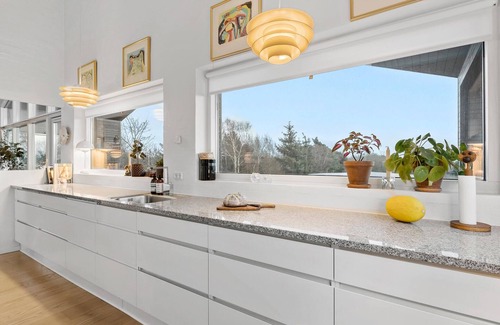 A holiday in this holiday home in Sebbersund offers you pure relaxation and Scandinavian comfort as well as a wonderful view of the fjord, which is very close by. The modern living room with its high ceilings and large windows creates a bright and inviting atmosphere. Make yourself comfortable on the cosy sofa while you enjoy the view of the well-tended garden. Here you can unwind or relax with a good book. Prepare delicious meals in the elegant, fully equipped kitchen. With plenty of worktop space and high-quality appliances, cooking is a pleasure here. Then serve your meals in the stylish dining area or outside at one of the many dining tables, where you can enjoy the fresh air and tranquillity of the surroundings.