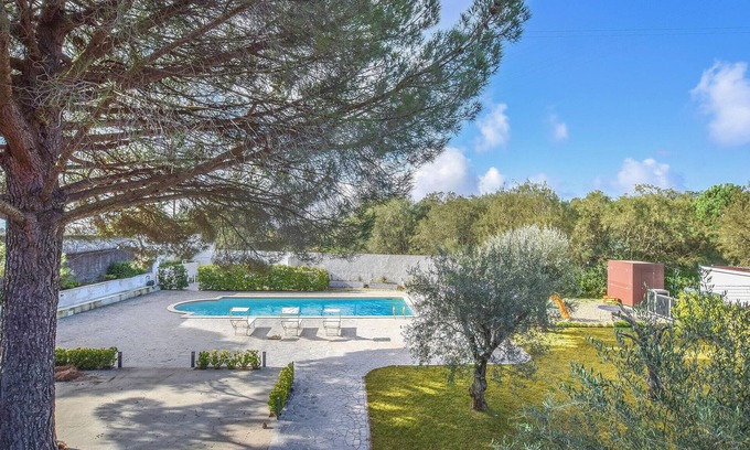 Spend a vacation in this vacation home that the whole family will remember with pleasure later. Up to 6 people can be accommodated in the house with 2 bedrooms and 2 bathrooms. From the bedrooms you have direct access to the outdoors. Equipment and furnishings are modern and comfortable, here you will find everything you need for a successful stay. In the private fenced garden there is a seesaw and a bouncy castle for children. Refresh yourself in the pool, which is available for you from April to the end of October. For your cars see 4 parking spaces available.