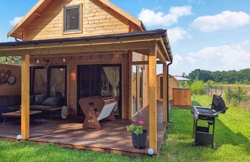 This holiday home in Nowe Warpno is ideal for families and groups of friends. Leave everyday life behind and immerse yourself in the relaxing atmosphere of the surrounding nature. The spacious veranda invites you to linger. Enjoy a cup of coffee in the cosy seating area or challenge your fellow holidaymakers to a game of table football. Varied games such as petanque and badminton provide plenty of fun, while younger guests can explore the numerous play options in the garden.