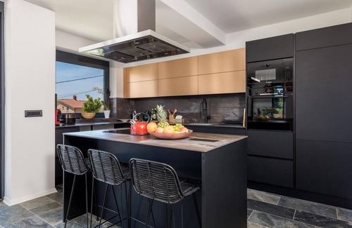 Come with your friends or extended family to this fantastic vacation home and experience a very special vacation that you will not want to end. You will find here unique interior and exterior with many plants, which is why you will immediately feel at home. Due to the external connection between the first floor and the second floor, you can use this apartment separately. Spend countless hours in the well-equipped summer kitchen with barbecue, which is located right next to the pool. From here you have a magnificent panoramic view of the town of Rab and the sea and can wonderfully unwind. Behind the house there is a fitness area for those who want to keep fit even on vacation.