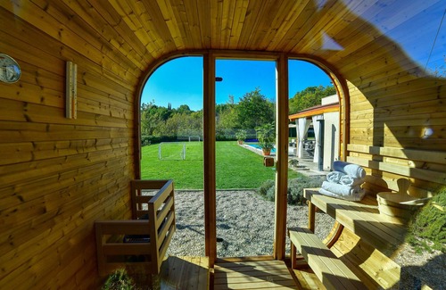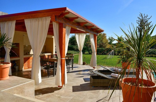 The villa is completely fenced, surrounded by a newly renovated garden - an olive grove with Mediterranean plants (olives, cypresses, lavender, rosemary, immortelle), a rose garden, where children can play carefree and have fun. The facilities offered are 5 quality mountain bikes in 3 different sizes, goals and a ball for indoor soccer, a basketball structure and a ball for basketball, and an outdoor table and rackets for playing table tennis.