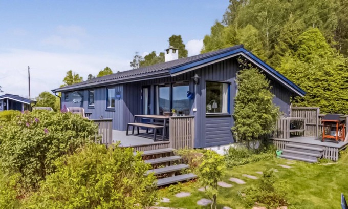 If you are looking for a homey atmosphere, beautiful nature and proximity to the fjord, this is the place for you. This beautiful wooden house, with a small outbuilding, welcomes you and invites you with its beautiful interior. Here you can make yourself comfortable, experience a crackling fireplace, play games together or cook delicious meals in the kitchen. Also enjoy long summer evenings on the terrace, look forward to grilled food and company of your loved ones.