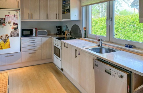 In this holiday home you can expect peace, cosiness and great opportunities for active recreation. Make yourself comfortable in the spacious sofa area. Lean back and enjoy a film or a good book. The room is bright, modern and invites you to linger. Cook together in the kitchen with plenty of worktop space and large windows. The adjoining dining area offers space for socialising, whether at breakfast, a festive dinner or a games evening together.