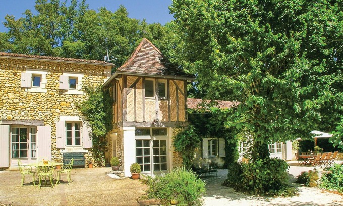 Located in the charming hamlet of Anguneau welcomes you this beautiful vacation home with pool not far from the town of Bergerac. The property is located at the end of a small road and is a very beautiful house in the typical architectural style of the region or the Périgord. It features an original dovecote, now perfectly renovated and integrated, a charming and timeless interior and large rooms, including a spacious entrance hall. Upstairs, a bright bathroom with tub awaits you, and the kitchen impresses with modern equipment, including good freezing facilities and wine refrigerators for optimal storage of your best wines from the region. On the 25 hectares of land that surrounds the property grow several protected forests with beautiful clearings. Stroll here in peace while enjoying the tranquility of the surroundings. The large, green garden with a pleasant bench and trees that cast a pleasant shade is an ideal place to relax. Children will also feel at home in this rural setting and can look forward to a wooden playhouse and a ping-pong table. Late at night, you can watch the starry sky while indulging in sweet dreams. Sunbathe on your two beautiful terraces and then cool off in the Asian-style pool. Outside this little vacation paradise, a region with many unique treasures for young and old lies at your feet.