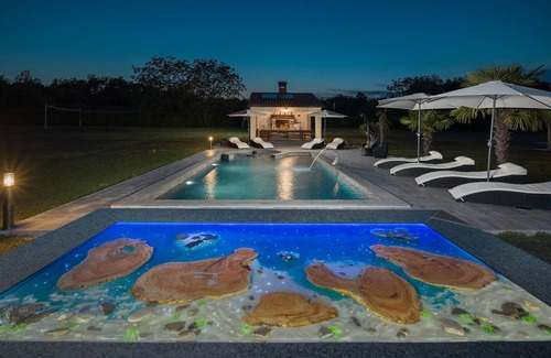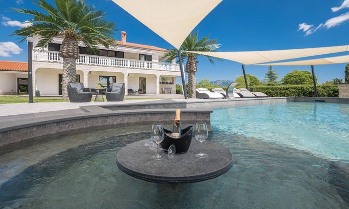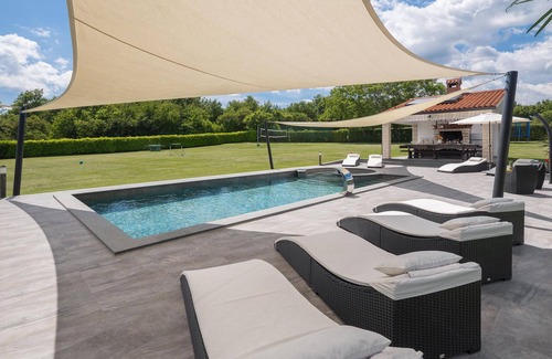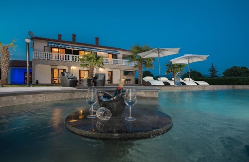 Mediterranean atmosphere, extensive wellness facilities and a heated pool welcome you here. In this vacation home you have two comfortable apartments connected by outdoor stairs. For especially pleasant hours outdoors, a heated pool is available. Wonderful for lounging and relaxing inside as well as outside, because there is plenty of space. The surrounding property is very spacious.Enjoy wellness here with starry skies over the whirlpool, light effects, steam bath, Finnish sauna and infrared sauna, as well as with a wonderful cold water shower. You will spend your vacation in an ambience that is a mixture of modern and rustic elements and is an ideal vacation base for two families vacationing together. Near the house is the well-known resort of Rabac with many cafes and souvenir stores and a beautiful promenade. Next to the pool is a summer kitchen with barbecue. To be active you can play billiards, table tennis and darts. There is also a children's playroom. In the neighborhood you will find walking paths and a small forest, the forest belongs to the owner. A special feature is the golf course (driving range) with an area of 10,000 m², three covered teeing grounds pointing to the set targets and the accompanying golf equipment (bag, balls, clubs and stands). You can explore the surroundings with four bicycles at your disposal. The landlord will be happy to give you tips on where to get local products such as wine, liqueur and honey.