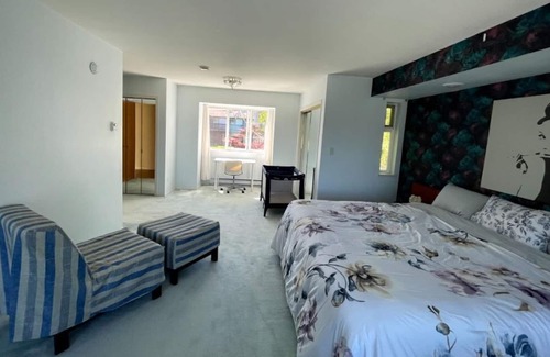 Guests will have access to nearly 3000sqft of space equipped with all the essentials and unique decor. Perfect for families and groups. There are two bedrooms down and one master bedroom with a king-size bed w/full bathroom on the upper floor.