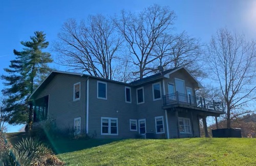 This stunning lake house is an outdoor enthusiast's dream. Huge windows allow you to take in the breathtaking views of the 10.5-acre lake and surrounding woods. While you'll be an easy 30-minute drive from downtown Cincinnati, the Aquarium, Creation Museum, and Riverbend Music Center, you'll revel in the stillness of the natural landscape surrounding this charming home. (Of course, the in-ground pool, fire pit, game room, fishing, hiking, basketball court & kayaks also sweeten the deal.)