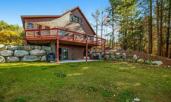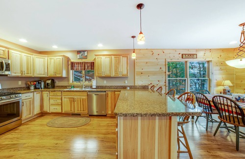 Offering plenty of space for everyone to spread out and relax, this serene and secluded, three-story lake house is the ideal getaway for all ages, no matter the season. Set right on Friends Lake, this recently built home blends a cozy Adirondack atmosphere with updated amenities from top-to-bottom. Start your days with breakfasts prepared in your well-equipped, full kitchen complete with stainless steel appliances and a breakfast bar. Then, dine together at the adjacent table for six before settling into one of two distinct living areas - one on the main level with a gas fireplace and a second on the lower level with a large sectional sofa and easy backyard access. Additionally, this home features a furnished sunroom, a deck overlooking the lake, a seasonal private dock, and a stone firepit with granite benches.