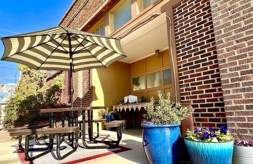 Spacious loft with high ceiling, architectural details, and an art studio feel. Situated in historic downtown, where a number of new businesses have opened including restaurants, shops, a bakery, bookstore, and winery. Walking distance from Howard Payne University and next door to highly acclaimed Steve’s Market & Deli. Short drive from parks and hiking trails. Comfortable, quiet, beautifully furnished. Well appointed kitchen and office area with printer and art supplies for guest use. Lovely space with abundant natural light, and new mid-century furnishings throughout.