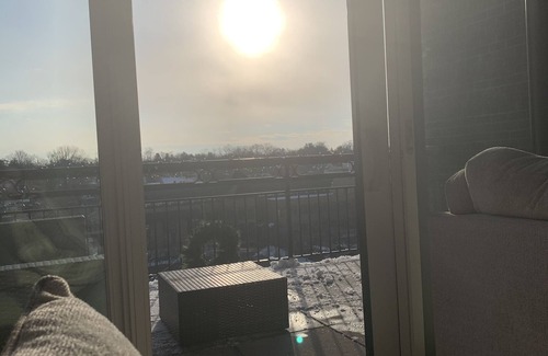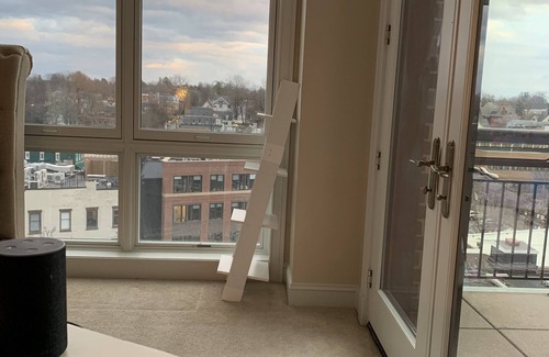 YOU wont want to leave! Best location in Saratoga! Beautiful, bright, modern, spacious penthouse overlooking downtown Saratoga Springs. 2 King beds, 2 full baths, full kitchen. Amazing views from the floor to ceiling windows in this open floor plan living space with vaulted ceilings. A 65”smart TV over the large gas fireplace and a giant cozy couch to relax after a day at the track. You’re literally a few steps from all shops, restaurants and bars. Heated, Private Parking in the building is included! Discounts and length of stay will be considered.