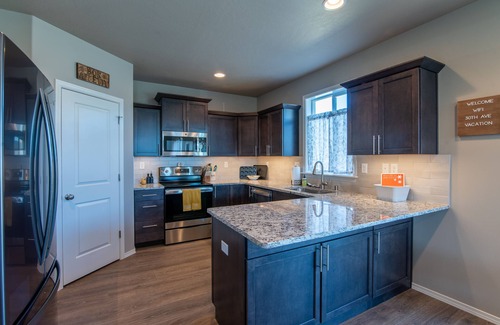 Kitchen: Beautiful kitchen with stainless steel appliances, oven/stove, refrigerator/freezer, dishwasher, pantry, granite countertops, and plenty of cookware and dishware to service 10 people as well as kid friendly dishes.