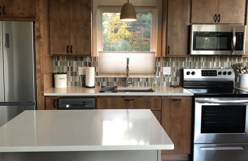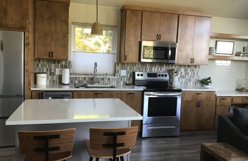 This stunning newer construction guest house comes fully furnished by an interior professional. It is in an established, quiet, safe, walkable SW Portland neighborhood. Washer/dryer in unit. All kitchen amenities included, plus InstaPot, smoothie blender and excellent coffee options! Enjoy breakfast on your private deck with unobstructed views of iconic Mount Hood. Minutes from downtown.