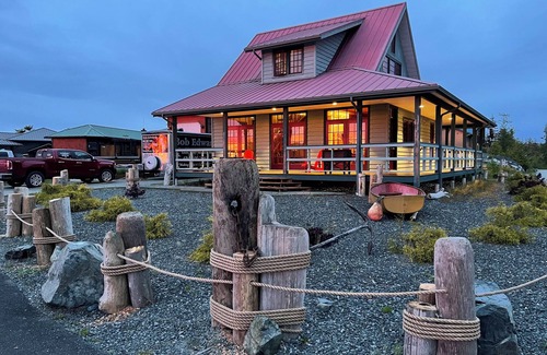 Enjoy spectacular ocean views at The Cottage at the Cove Studio Suite. You just might see Killer Whales, Humpback Whales, the odd Minke Whale, Dolphins, Porpoises, Sea Lions, and Sea Otters swimming by. There are also Bald Eagles, Deer and more that you can see right from the comfort of your room. Some of the most gorgeous sunsets ever are able to be seen from the oversize windows designed to capture the views of the ocean and mountains. The suite was completed in May 2024 and features high 8'3" ceilings throughout the unit. The cabinets are topped with luxurious quartz counters, residential fridge/freezer, stove, oven, microwave and all you need to bring in is your food and drink. If you don't feel like cooking the Killer Whale Cafe and the Saltery Pub offer great food and drinks and they are only a short walk from your room. The bathroom features an oversized shower with porcelain tiles and glass rolling shower door. The property and suite is tastefully decorated with the ocean in mind with nice touches like nautical pictures and ornaments, real used fish net floats, old weathered rope and old rough boards and logs from Telegraph Cove. There is a permanent queen bed and if you need additional bedding , we just added a sofa "Hide a Bed" for an extra couple adults or children. We are located a short walk from the Historic Telegraph Cove in the residential area, but far enough away to be very quiet and relaxing. It is close to many walking trails and a short drive to a few local lakes up in the mountains. There is a private barbecue area with a table and chairs for those evenings you want to take in the views and fresh air. The suite has free parking for your vehicle and also free wifi. You can stream on the large new flat screen TV. If you are looking for Bear, whale and nature watching we can connect you with the right people. If you are looking for world class fishing, whale watching and Grizzly Bear Watching, Telegraph Cove is where you want to be. We are the Gateway to the Broughton Archipelago, BC's largest marine park and the mountains offer some of the most incredible wildlife for your viewing pleasure. If you are looking to charter a private luxury cruise around the area or a fishing adventure we have a brand new 2825 Kingfisher boat loaded with amenities including a private bathroom with flush toilet, heated cabin, fridge, dinette area and all the latest in electronics and safety gear. We have binoculars on board and a high end non skid back deck for viewing the scenery and wildlife. The captain has over 40 years experience in the area and plans to be fully licensed for the 2025 season. We highly recommend you book a Tide Rip Grizzly Adventure Tour as well as Prince Of Whales, Whale watching. They are both first class companies that provide a memorable experience. Come join us at what is our favourite place on earth.