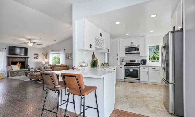 Also available for mid or longer term rental. Message for inquiry. Fully furnished and all utilities included. Or simply come celebrate a special occasion! This gorgeous spacious 3 bedroom, 2 bathroom one story property has it all. Located in East County San Diego in El Cajon, Dehesa area conveniently close to freeways, easy access to shops, gas station, stores and more! Indulge in a sparkling salt water pool and spa, completely secluded and fully fended with breathtaking views! It has a brand new farmhouse style kitchen as well as newly remodeled bathrooms. This property might be what you’re looking for!