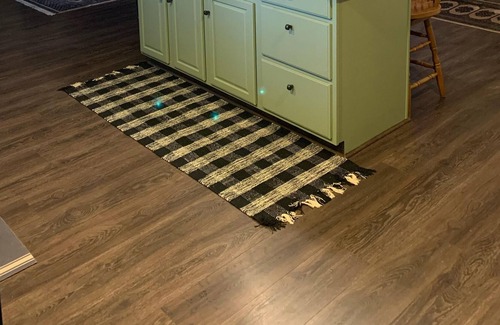 A nicely updated country kitchen has beautiful countertops, and is fully equipped with all necessary cooking utensils and appliances, and refrigerator and dishwasher. A half bath is located off the great room. A washer and dryer are located off the kitchen by the entrance way from the three-car parking area.
