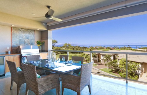 • Outdoor Lanais: The upper-level outdoor lanai features: a dining table for 6; lounge seating for 6; a Wolf BBQ; and a Sub Zero mini-refrigerator. Combined with the downstairs lanai, the villa offers over 700 square feet of private outdoor space, all with gorgeous, expansive ocean views.