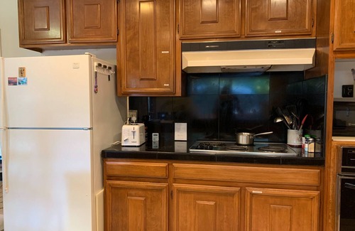 Large two story, 2500 square-ft. COVID-free house. The house has 5 bdrms and 3.5 bath. Located in a quiet, safe neighborhood in Saratoga and close to Cupertino, Sunnyvale, and Santa Clara. The house has high-speed wifi, two living spaces, a dining room, and a clean fully-equipped kitchen. In the yard, there are two gardens, an outdoor workspace, living space, grills, hammock, deck, and gazebo. EV-charging available.