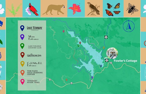Golf, tennis, dining, swimming pools, and other resort amenities are available through the Lake Toxaway County Club during the months of May-November with a daily resort fee charge. The Greystone Inn is across the lake and is an elegant, pleasant, historic location for dining, drinks, a spa, and relaxing. The cottage includes free wi-fi, a large flat screen tv in the living room, a "30” flat screen in one of the bedrooms, a new Weber gas grill, and lake access.