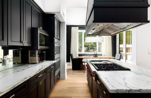 A newly updated kitchen fully equipped with Wolf and Sub-Zero appliances invites meal preparation of all sizes. Small appliances include a Wolf drip coffee maker, Keurig, blender, Wolf toaster, mixer, crockpot, waffle maker, griddle, rice cooker and more! Children's dinnerware is stocked for our littlest guests.