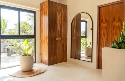 Villa Saadhu This exclusive villa with boho design is located in the central part of Isla Mujeres, just steps from the beach and an incredible ocean view. It has 1 master suite, 3 secondary bedrooms, 4 full bathrooms, kitchen, living room, dining room, parking, swimming pools, patio, terraces and incredible sea views, air conditioning and WIFI throughout the villa. Ideal for families, couples or groups of friends looking for tranquility and relaxation.