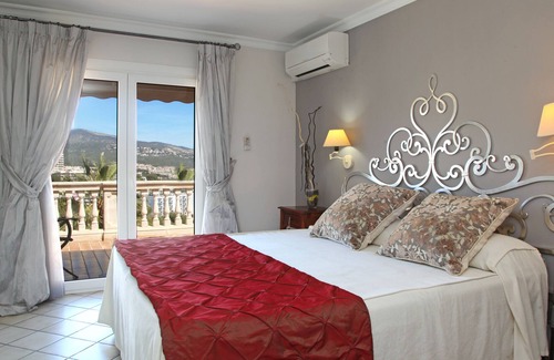 The house with amazing views to the Mediterranean has spacious terraces, private pool with a lawn area, loungers, table and chairs and barbecue.