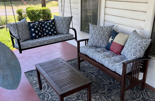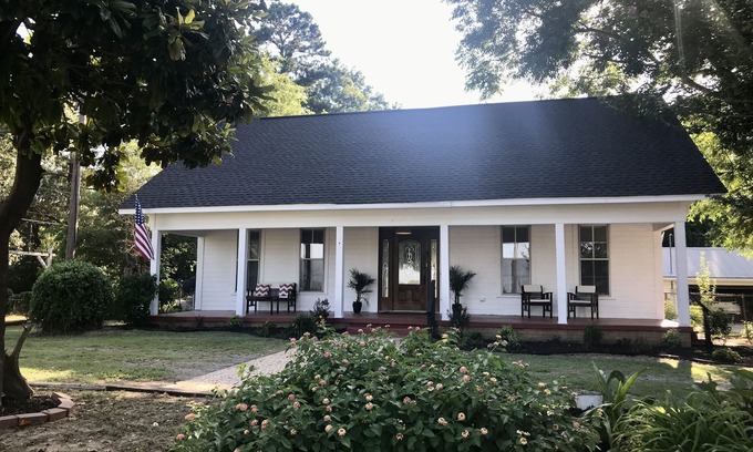 Grable Creek Farmhouse is a very special place with pecan orchards and a quaint country setting. It is a charming 1920’s farmhouse conveniently located near Longview Regional Airport in Longview, Kilgore and Lakeport and is only minutes from Lake Cherokee. This fully restored historic home is cozy and perfect for family gatherings! Come get recharged while sitting on the front porch swing or in our fully fenced in backyard and patio area with a fire pit or relaxing in the jetted tub!