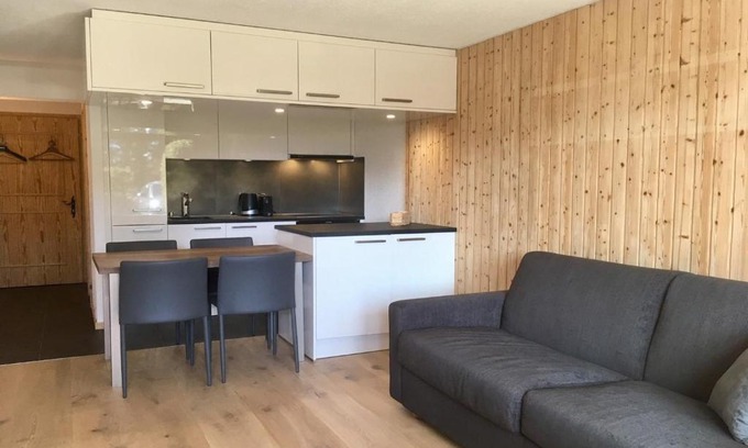 Providing a garden, Grain d'Or - Studio 008 offers accommodations in Verbier. This property offers access to a terrace and free private parking. Sion Golf Club is 25 miles from the apartment and Mont Fort is 20 miles away. With free Wifi, this apartment provides a cable flat-screen TV, and a fully equipped kitchen with an oven and fridge. Towels and bed linen are provided in the apartment. The accommodation is non-smoking. Skiing is possible within the area and the apartment offers ski-to-door access. Geneva International Airport is 99 miles away.