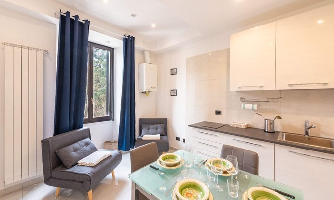 Bright and cosy two-rooms apartment on the second floor in a strategic area of the city, well connected to main tourist attractions and to the metro easily reachable on foot. The kitchen is complete with dishes and appliances: dishwasher, fridge, microwave, and kettle. The sleeping area consists of 1 bedroom with 1 double bed and 1 double sofa bed. The apartment is for non-smokers only and is provided with crib, wifi, television, toiletries, washing machine, hair dryer, iron and ironing board. The house is at your complete disposal and we've put care in every detail in order to welcome you in a clean and comfortable space, whether you're staying for business or just passing by to visit the city. You're welcome, take care of it! . City Tax: € 2,00 per person per night to pay at check-in for a maximum of 5 nights