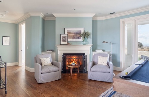 A secluded and grand retreat nestled on 55 acres of beautiful rolling hills in Paso Robles! Inside, you'll find hardwood floors, a pool table, a drink cart, and large windows that offer breathtaking views of the stunning landscape from every part of the house. Relax on the front porch at sunset and admire the vineyards while sipping a glass of merlot from one of the nearby wineries. Have some fun on the Bocce court, share a meal with loved ones at the outdoor dining table, and end the day with a dip in the pool followed by toasting marshmallows on the fire pit. Enjoy your private getaway in the scenic hills of Paso Robles and create unforgettable memories.