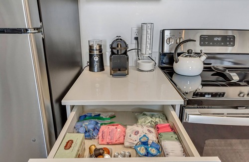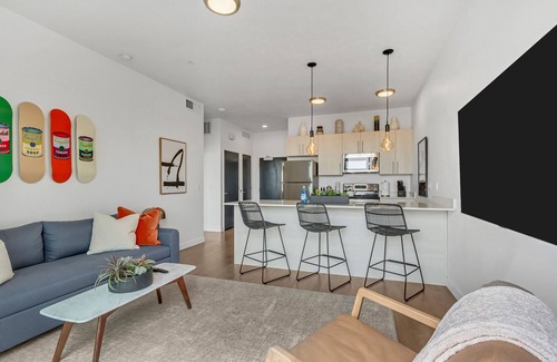Enjoy a stylish experience at this downtown located beautifully designed penthouse that boasts one king size bedroom and a large living room with a comfortable, fancy sleeper sofa. Kitchen is fully set with modern appliances so you can dine in style in the dining area, or enjoy some mountain and city views on the balcony.