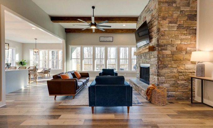Welcome to The Retreat! This luxurious home was designed by HGTV's Amy Catherine and comfortably nestled in the mountains. The retreat is 20 miles outside of Nashville and is a dreamy, modern cabin sitting in a beautiful, breathtaking suburb of Nashville, Kingston Springs. You will get the best of both worlds - a peaceful mountain getaway with an amazing view on 1.2 acres and space for all your guests! But, still close to the vibrant nightlife of Nashville and everything the city offers.